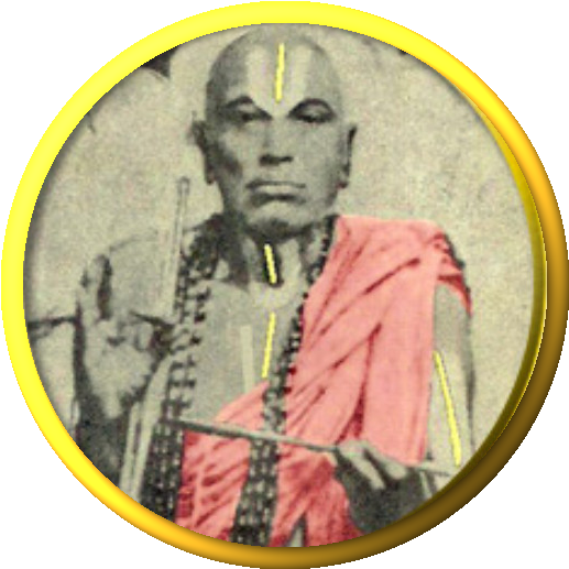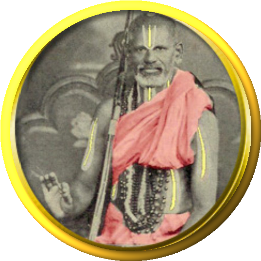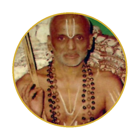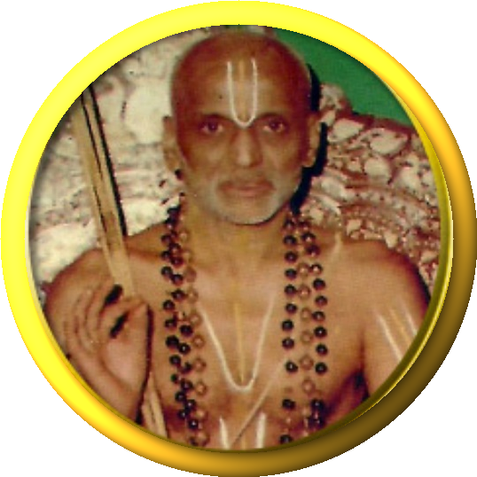 Born in Thaarana-Parthiva (Aashada Punarvasu 1884) as a result of the prayers of Sri Lakshmi Nrsimha, Sri Ramachandra, Rangacharya, a scion of the family of Hareetha to which Sri Bhagavadh Ramanuja belonged, early moved out to Mysore from his place of birth at the age of seventeen prompted by his unquenchable thirst for the knowledge to crown his knowledge of Shastras which he had already attained at an early age. Sri Krishna Brahmatantra Pakala Swami (31st Jiyar) discerned this legitimate greed for knowledge, and bestowed on him Sri Chakrankanam and Sri Bhasyartham and consigned him to the care of Sri ‘Pandita-ratnam’ Kasthuri Rangacharya Swami, who had already won for himself as great a name in India as his renowned teacher Sri Ranganatha Brahmatantra Parakala Swami (30th Jiyar). Along with the study of Darshanams, Nyaya, Sahithya, Mimamsa, Vaisheshika and Vishishtadvaitha Vedantha, Sri Rangacharya conducted his regular studies of Sahitya, Alankara, Vyakarana.etc.under the respective teachers in Maharaja’s Sanskrit College.