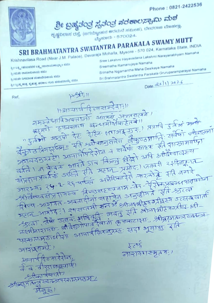 Jan 23 – Jan 25, 2026: Parakala Matham USA – New Center at Charlotte, NC – Inauguration